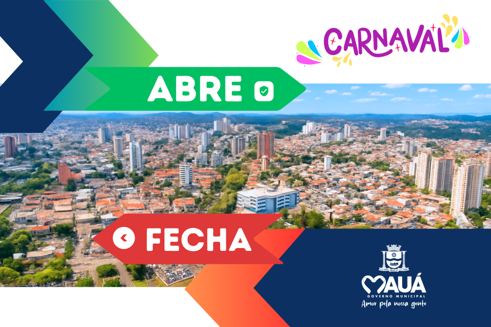 Em razão do feriado de Carnaval, a Prefeitura de Mauá estará fechada durante os pontos facultativos da segunda-feira (16/02) e da terça-feira (17/02). A reabertura será na quarta-feira de cinzas (18/02) às 13h, quando retorna o expediente normal.