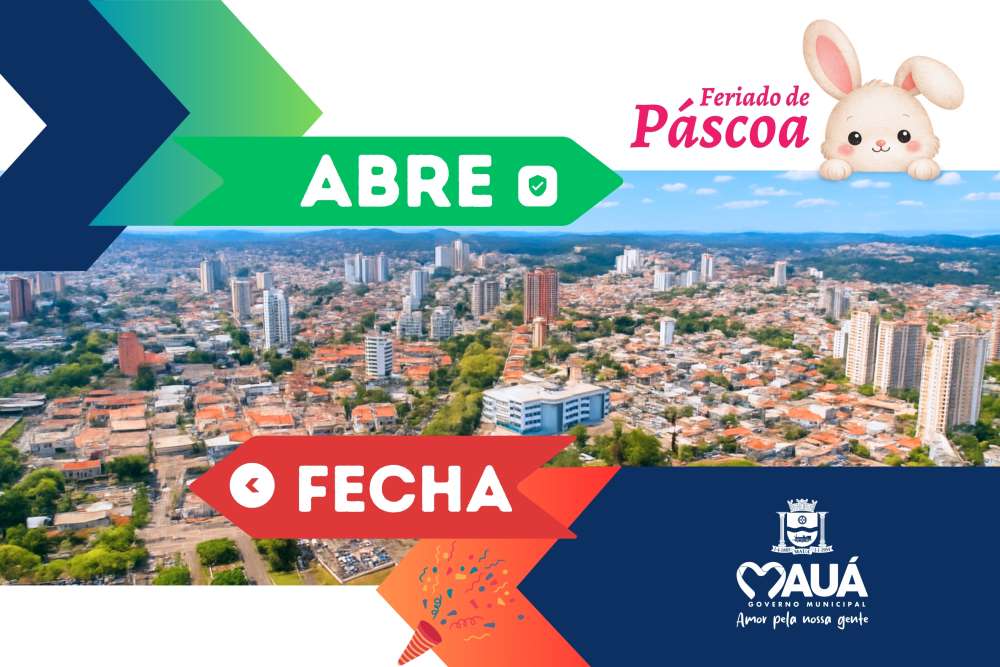 Em razão do feriado da Páscoa, a Prefeitura de Mauá estará fechada nesta sexta-feira (03/04). A reabertura será na segunda-feira (06/04) às 8h.