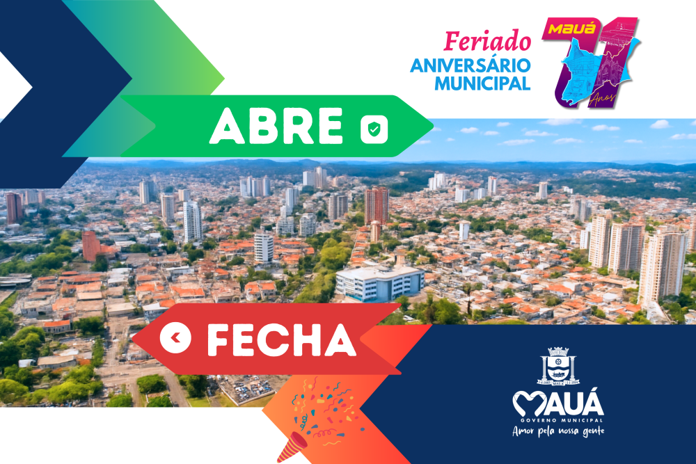Na próxima segunda-feira (08/12), Mauá vai completar 71 anos. Por conta do aniversário da cidade, as repartições municipais, terão sistema diferenciado de funcionamento: