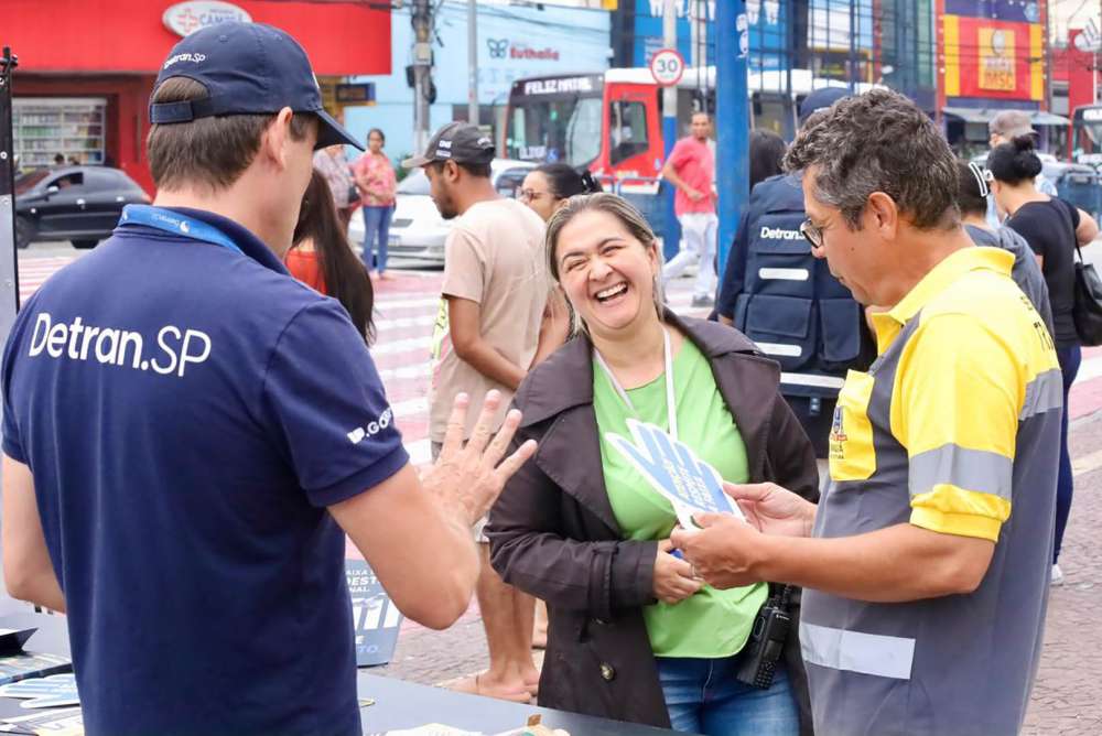 Na oportunidade, também foi realizada ação com os pedestres que estavam na região central reforçando a importância de utilizar a faixa e pedestre. Foram distribuídos materiais informativos e brindes para as crianças.